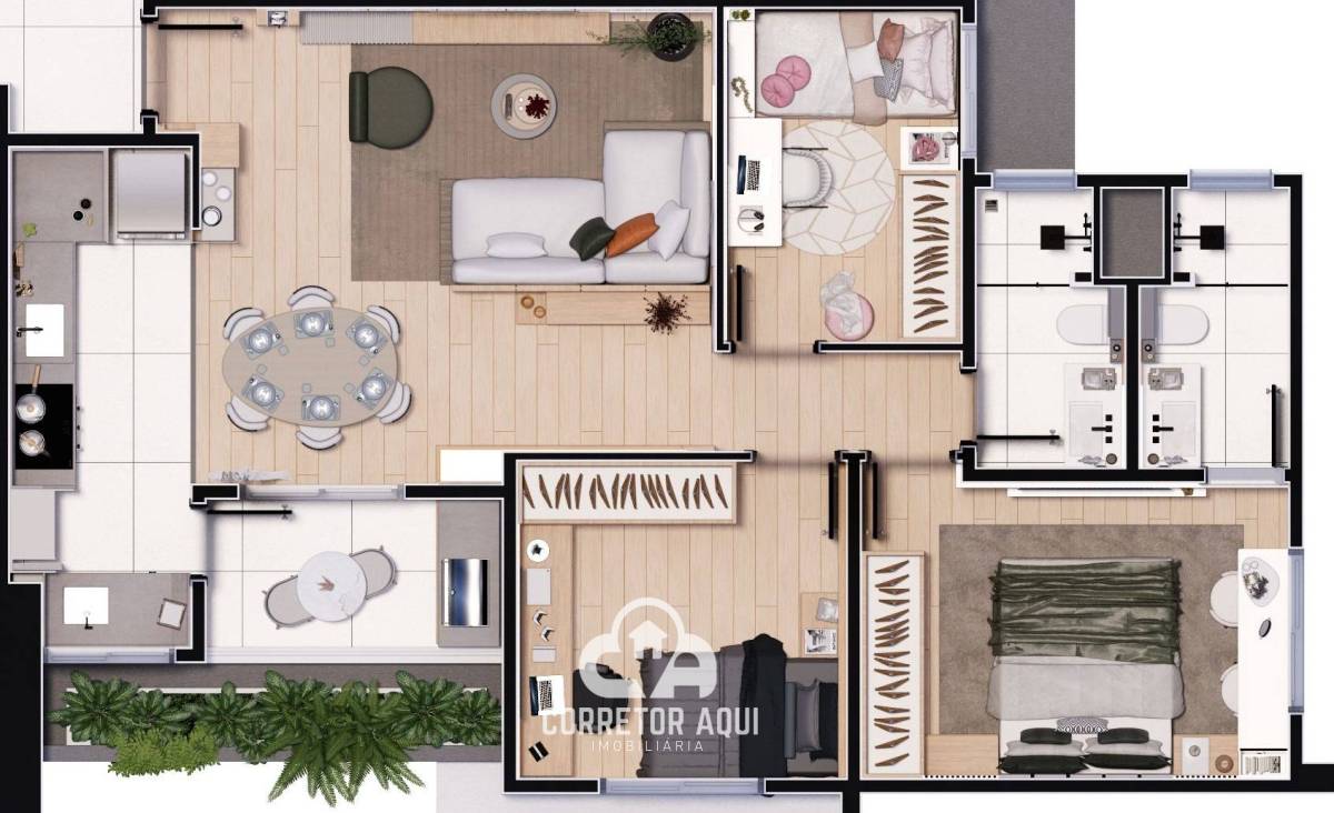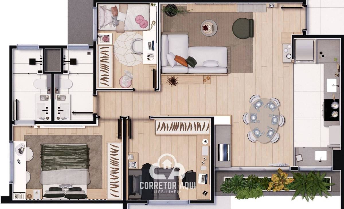 A suíte garante privacidade e aconchego, enquanto os demais dormitórios proporcionam ampla flexibilidade de uso. A área social integrada valoriza a convivência, e a cozinha planejada oferece praticidade. Além disso, a opção de living ampliado permite personalizar o espaço conforme suas necessidades.